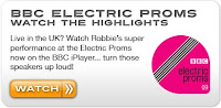 "Robbie Williams venceu seu retorno nervoso Fator X com uma arrepiante performance de abertura da BBC Proms na noite passada.
